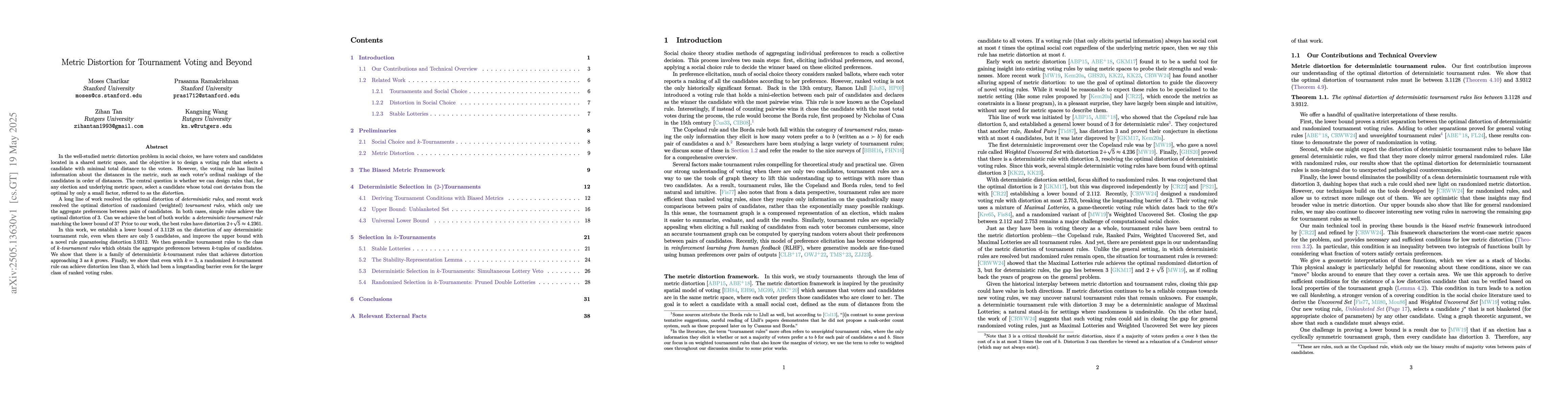 The work extends previous research on metric distortion by introducing k-tournament rules, achieving improved distortion bounds, and bridging the gap between deterministic and randomized rules.