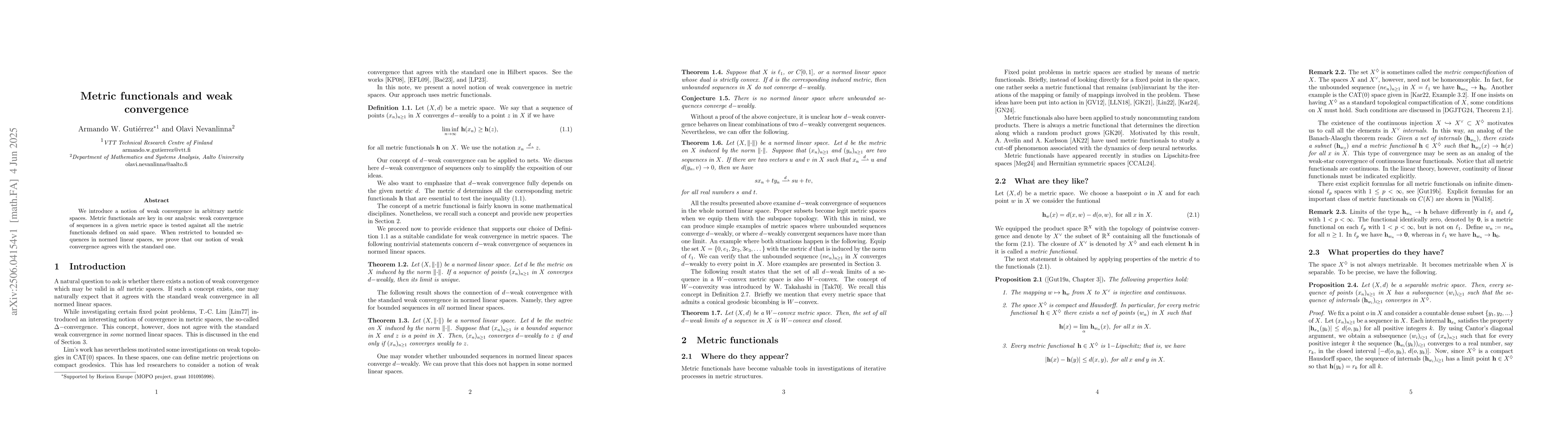 The research introduces a new notion of weak convergence in metric spaces, utilizing metric functionals to test convergence of sequences.