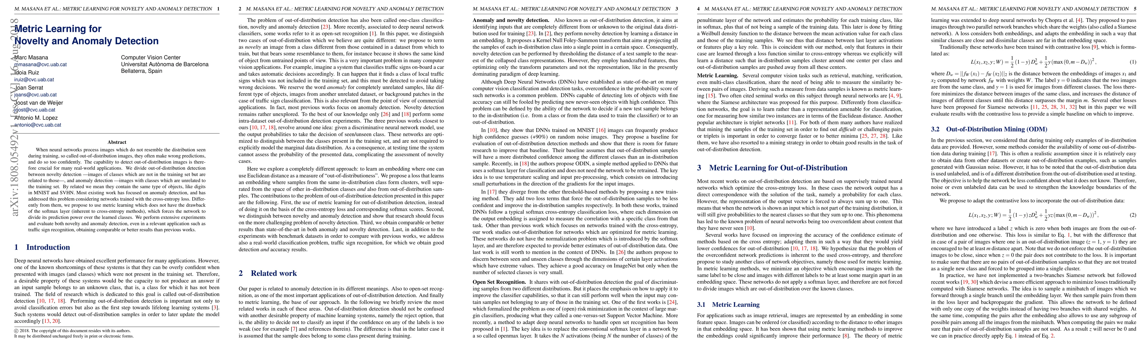 This paper proposes metric learning for detecting out-of-distribution images in neural networks, distinguishing between novelty and anomaly detection. It achieves comparable or better results than previous methods, avoiding the limitations of softmax-based cross-entropy loss.