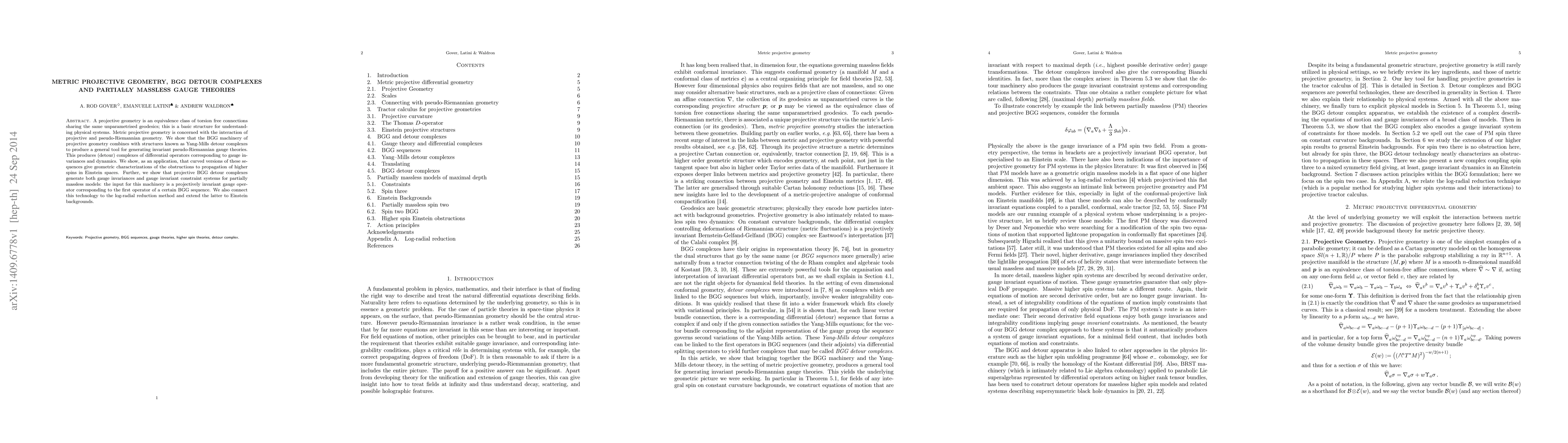 This paper explores the intersection of metric projective geometry and BGG detour complexes to generate invariant pseudo-Riemannian gauge theories, providing a framework for understanding partially massless gauge theories and their obstructions to propagation in Einstein spaces. The BGG machinery is shown to produce differential operator complexes that encapsulate gauge invariances and dynamics, with applications extending to log-radial reductions in Einstein backgrounds.