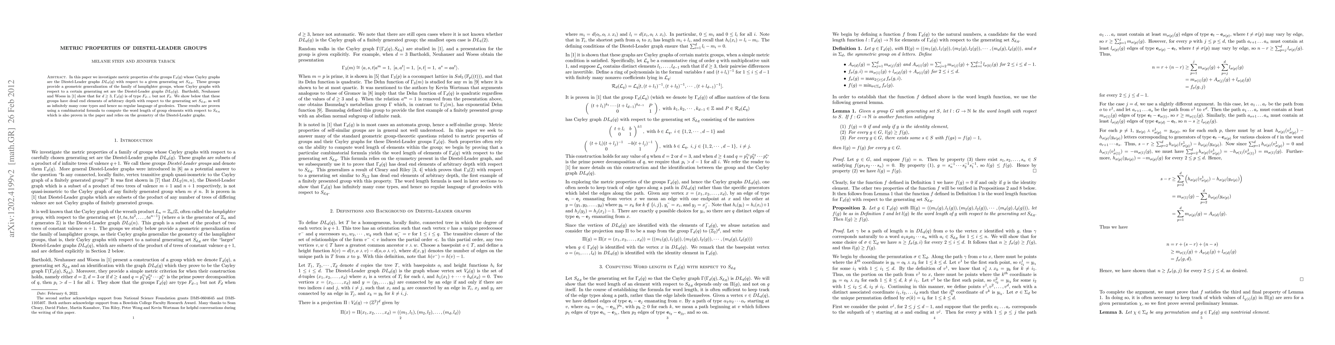 This paper investigates the metric properties of Diestel-Leader groups, showing they have arbitrary-depth dead ends and infinitely many cone types, which implies no regular language of geodesics.