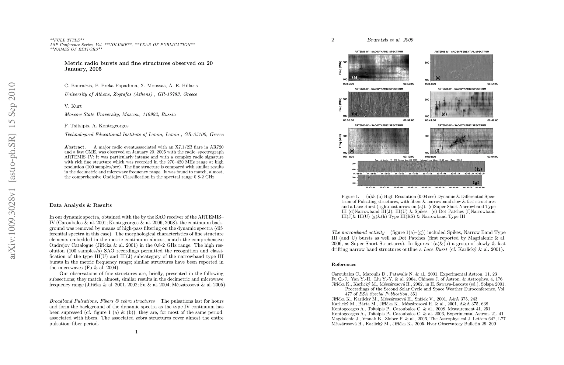 On January 20, 2005, an intense solar radio event linked to a powerful X7.1/2B flare and fast CME was recorded using ARTEMIS-IV. The complex radio signature, with rich fine structure, was compared to existing classifications and was found to align with the Ondrejov Classification in the 0.8-2 GHz range.