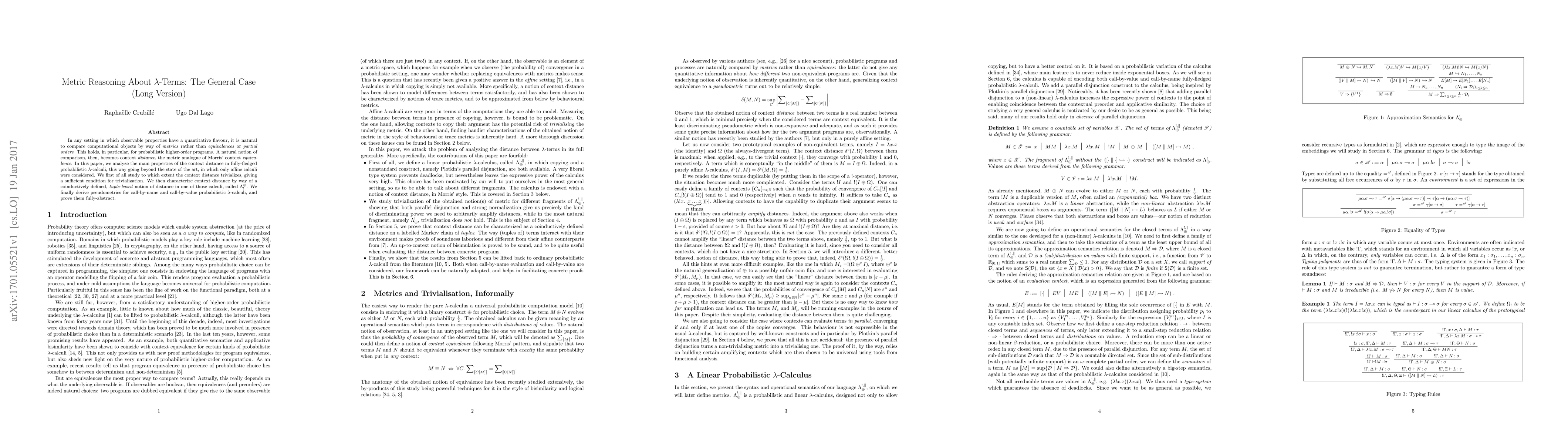 In any setting in which observable properties have a quantitative flavour, it is natural to compare computational objects by way of \emph{metrics} rather than equivalences or partial orders. This holds, in particular, for probabilistic higher-order programs. A natural notion of comparison, then, becomes context distance, the metric analogue of Morris' context equivalence. In this paper, we analyze the main properties of the context distance in fully-fledged probabilistic $\lambda$-calculi, this way going beyond the state of the art, in which only affine calculi were considered. We first of all study to which extent the context distance trivializes, giving a sufficient condition for trivialization. We then characterize context distance by way of a coinductively defined, tuple-based notion of distance in one of those calculi, called $\Lambda^\oplus_!$. We finally derive pseudometrics for call-by-name and call-by-value probabilistic $\lambda$-calculi, and prove them fully-abstract.