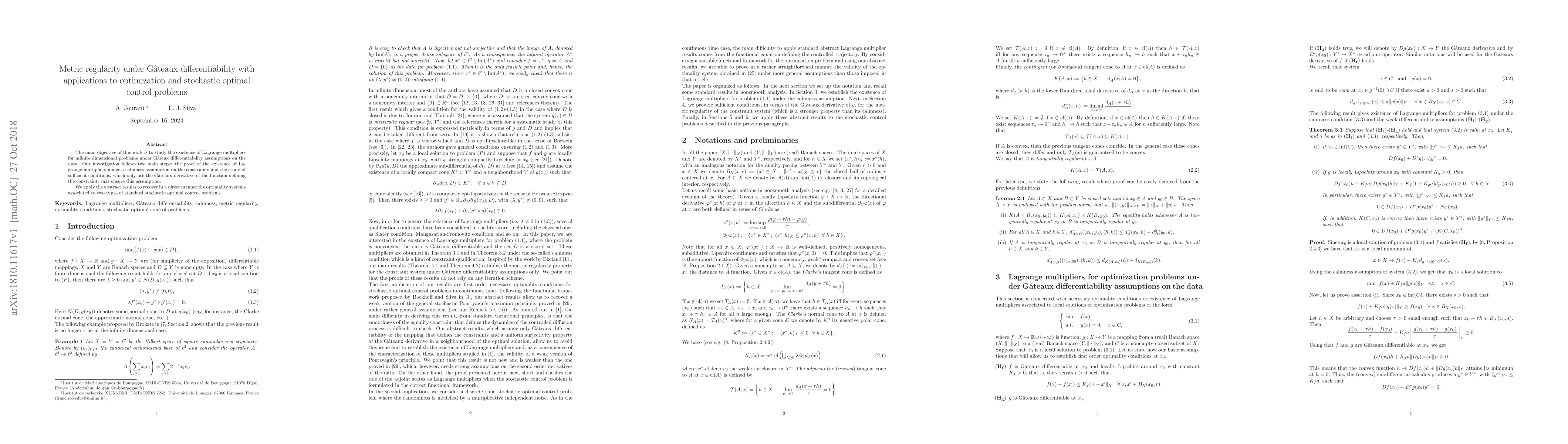 This paper investigates the existence of Lagrange multipliers in infinite-dimensional optimization problems under Gâteaux differentiability, proving their existence under a calmness assumption and identifying sufficient conditions based on Gâteaux derivatives. Applications to optimization and stochastic control problems are also discussed.