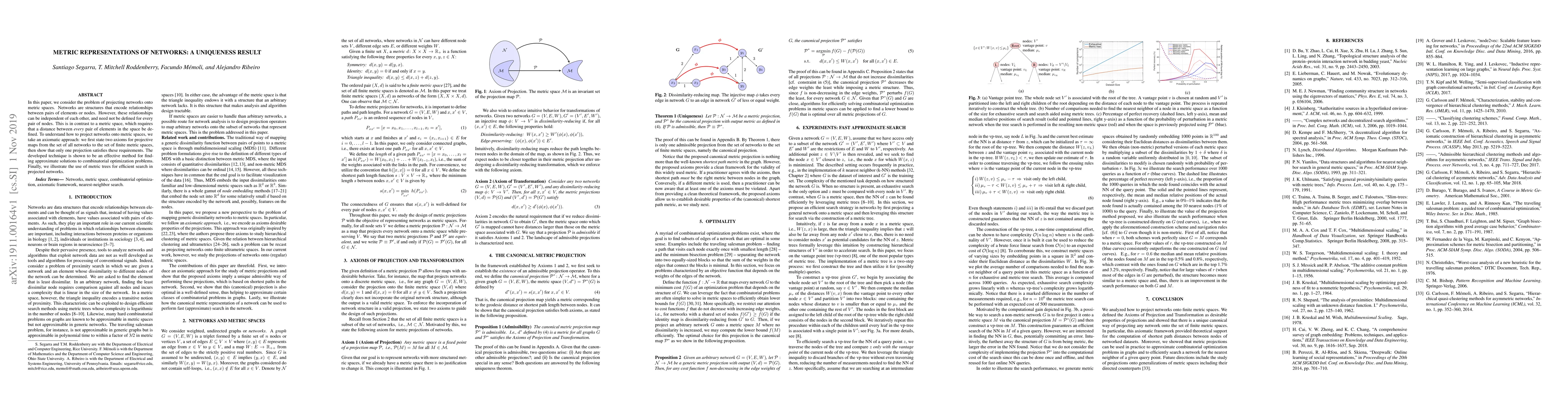 A new method for projecting networks onto metric spaces has been developed, showing that only one projection satisfies two key axioms, providing a unique solution to a complex problem.