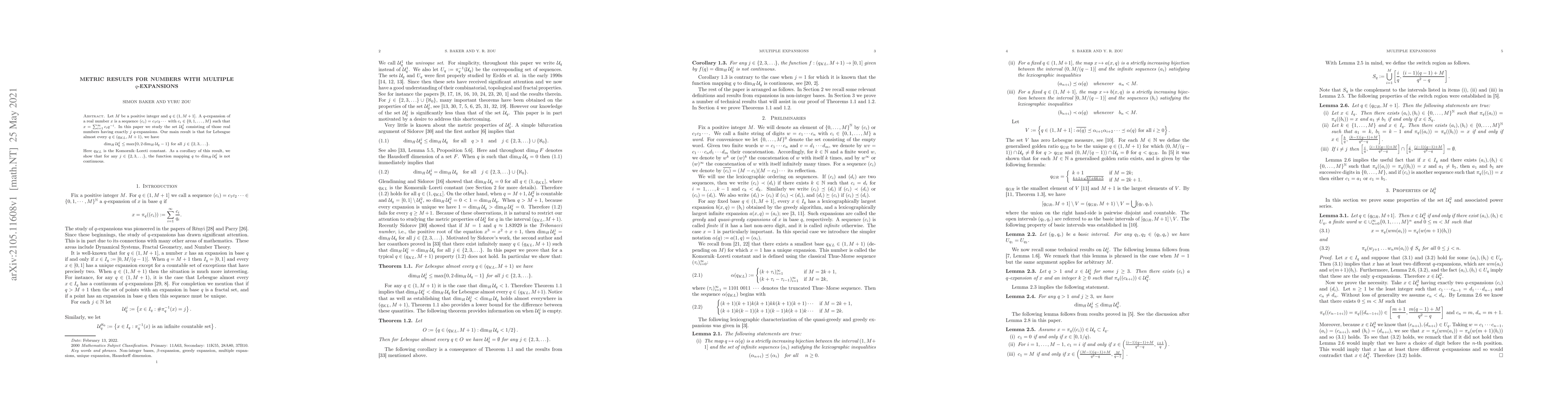 Let $M$ be a positive integer and $q\in (1, M+1]$. A $q$-expansion of a real number $x$ is a sequence $(c_i)=c_1c_2\cdots$ with $c_i\in \{0,1,\ldots, M\}$ such that $x=\sum_{i=1}^{\infty}c_iq^{-i}$. In this paper we study the set $\mathcal{U}_q^j$ consisting of those real numbers having exactly $j$ $q$-expansions. Our main result is that for Lebesgue almost every $q\in (q_{KL}, M+1), $ we have $$\dim_{H}\mathcal{U}_{q}^{j}\leq \max\{0, 2\dim_H\mathcal{U}_q-1\}\text{ for all } j\in\{2,3,\ldots\}.$$ Here $q_{KL}$ is the Komornik-Loreti constant. As a corollary of this result, we show that for any $j\in\{2,3,\ldots\},$ the function mapping $q$ to $\dim_{H}\mathcal{U}_{q}^{j}$ is not continuous.