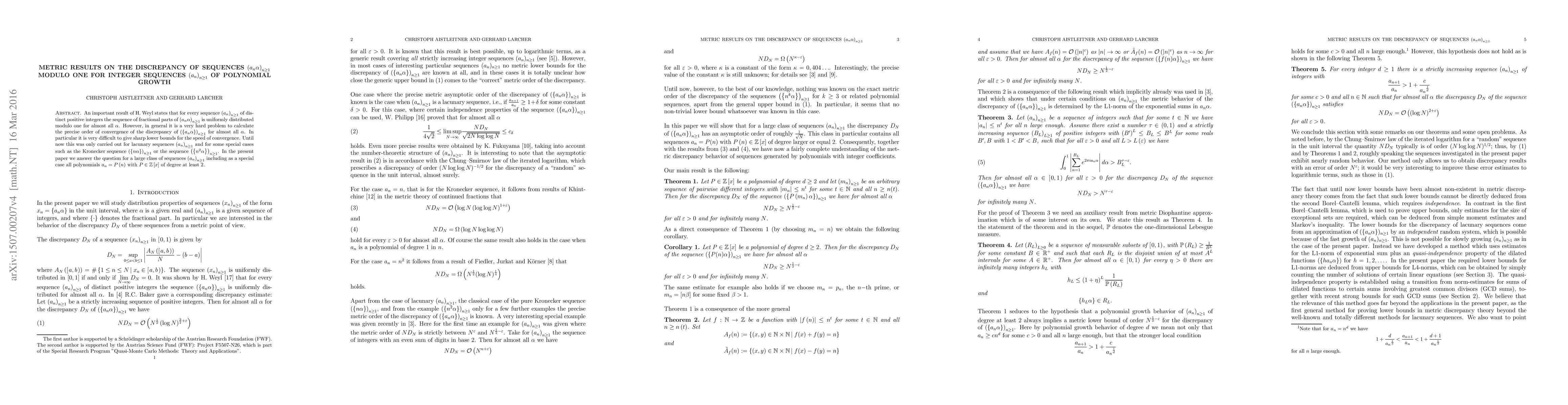This paper investigates the speed of convergence of fractional parts sequences for a large class of polynomial growth integer sequences, providing new insights into the discrepancy problem.