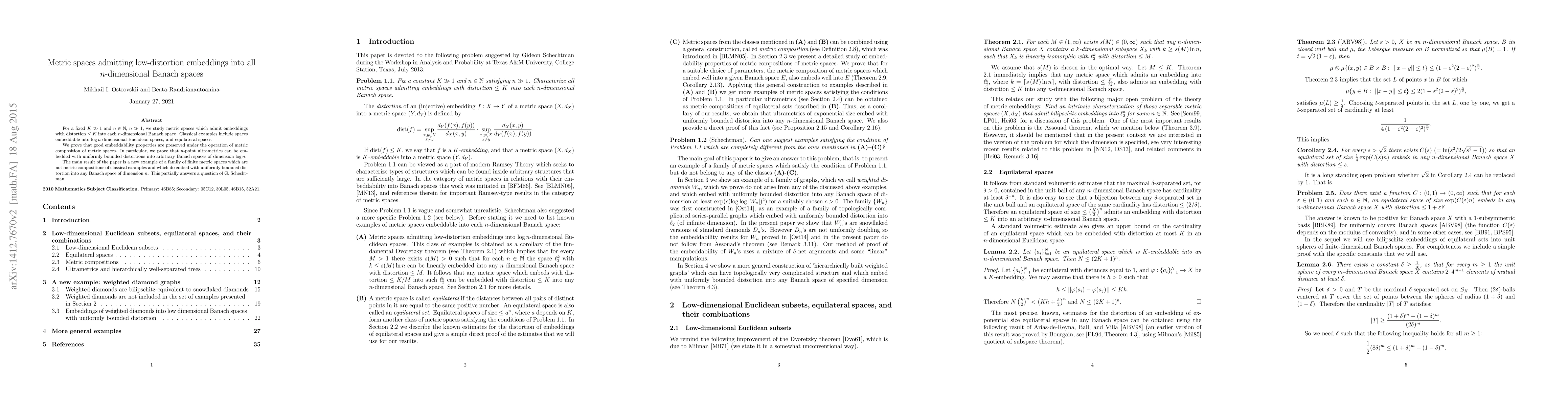Summary: This paper explores metric spaces that can be embedded with low distortion into any $n$-dimensional Banach space, proving that good embeddability properties are preserved under metric composition. It introduces a new family of finite metric spaces that embed with uniformly bounded distortion into Banach spaces of dimension $n$, partially answering a question posed by G. Schechtman.