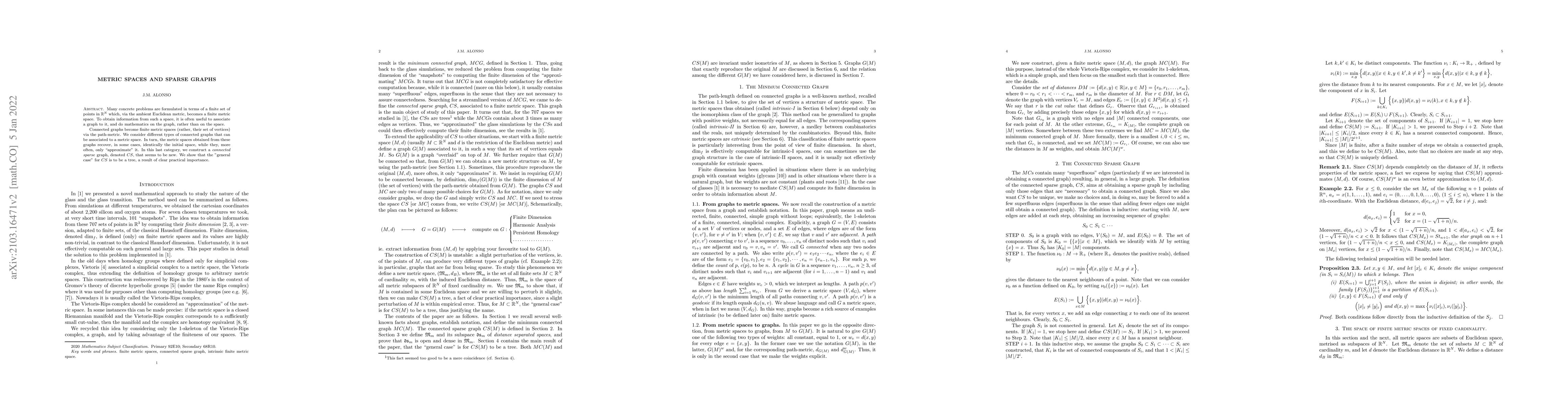 This paper explores the relationship between finite metric spaces and connected graphs, particularly focusing on sparse graphs that approximate the original metric space. It introduces a new connected sparse graph, CS, which often takes the form of a tree, highlighting its practical significance.