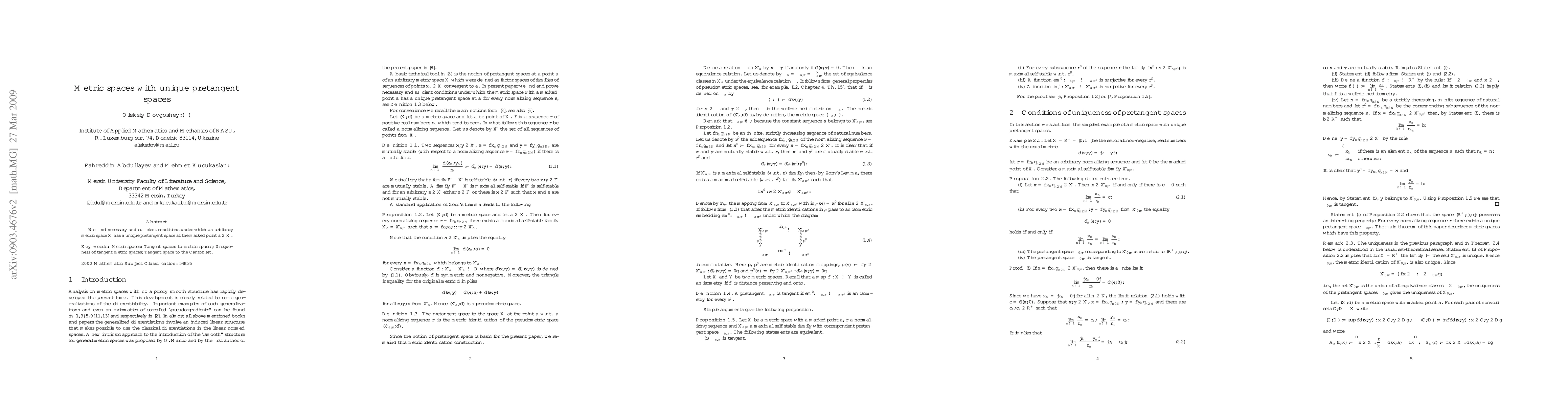 Summary: The paper identifies conditions for a metric space $X$ to possess a unique pretangent space at a specified point $a\in X$, focusing on the implications for metric spaces and the uniqueness criteria for tangent spaces, particularly in relation to the Cantor set.
