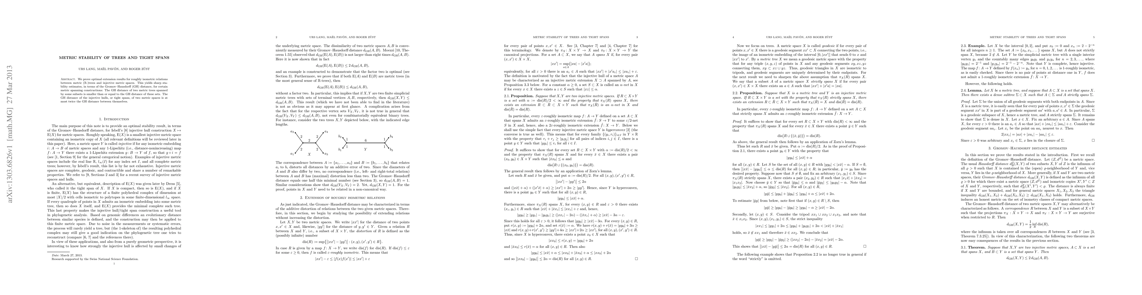 In this note, we prove optimal extension results for roughly isometric relations between metric (R-)trees and injective metric spaces. This yields sharp stability estimates, in terms of the Gromov-Hausdorff (GH) distance, for certain metric spanning constructions: The GH distance of two metric trees spanned by some subsets is smaller than or equal to the GH distance of these sets. The GH distance of the injective hulls, or tight spans, of two metric spaces is at most twice the GH distance between themselves.