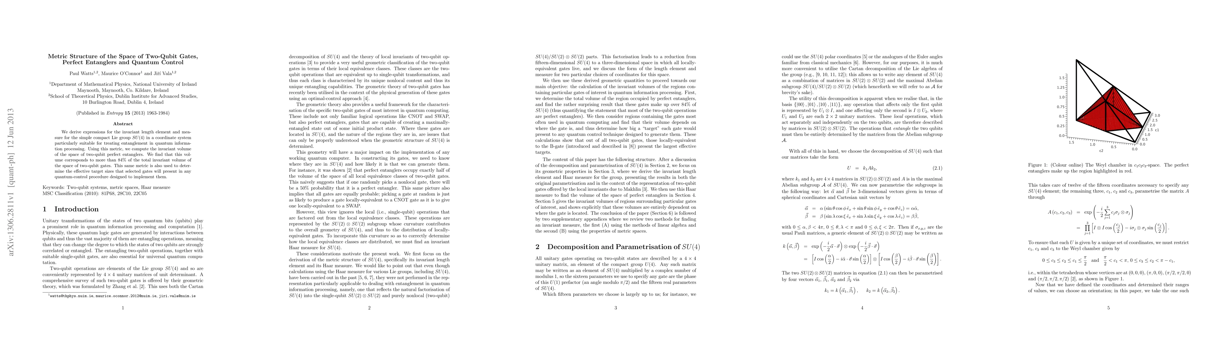 This paper derives a metric for the SU(4) group to analyze the space of two-qubit gates, finding that over 84% of this space is occupied by perfect entanglers. It also uses the metric to determine effective target sizes for quantum-control procedures.