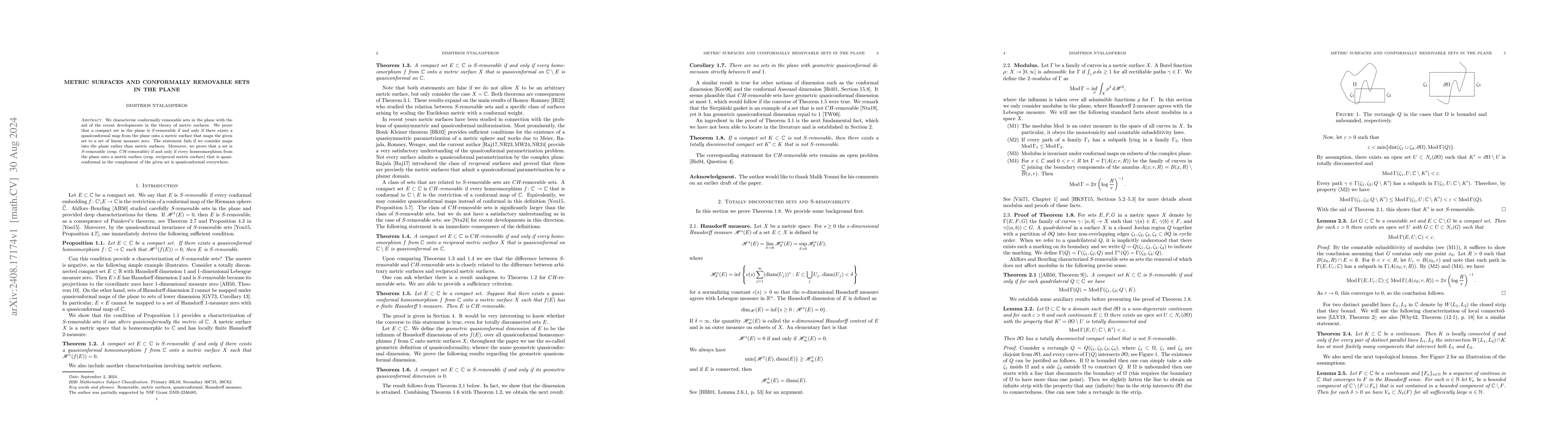 The paper utilizes recent developments in the theory of metric surfaces to characterize conformally removable sets in the plane.