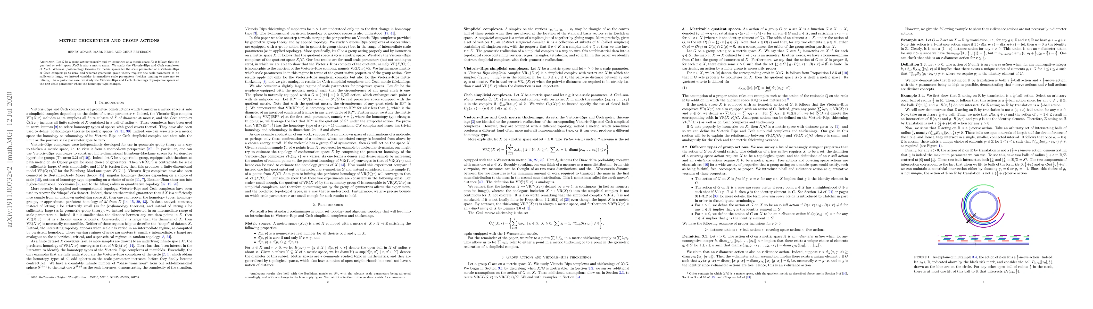 Let $G$ be a group acting properly and by isometries on a metric space $X$; it follows that the quotient or orbit space $X/G$ is also a metric space. We study the Vietoris-Rips and \v{C}ech complexes of $X/G$. Whereas (co)homology theories for metric spaces let the scale parameter of a Vietoris-Rips or \v{C}ech complex go to zero, and whereas geometric group theory requires the scale parameter to be sufficiently large, we instead consider intermediate scale parameters (neither tending to zero nor to infinity). As a particular case, we study the Vietoris-Rips and \v{C}ech thickenings of projective spaces at the first scale parameter where the homotopy type changes.