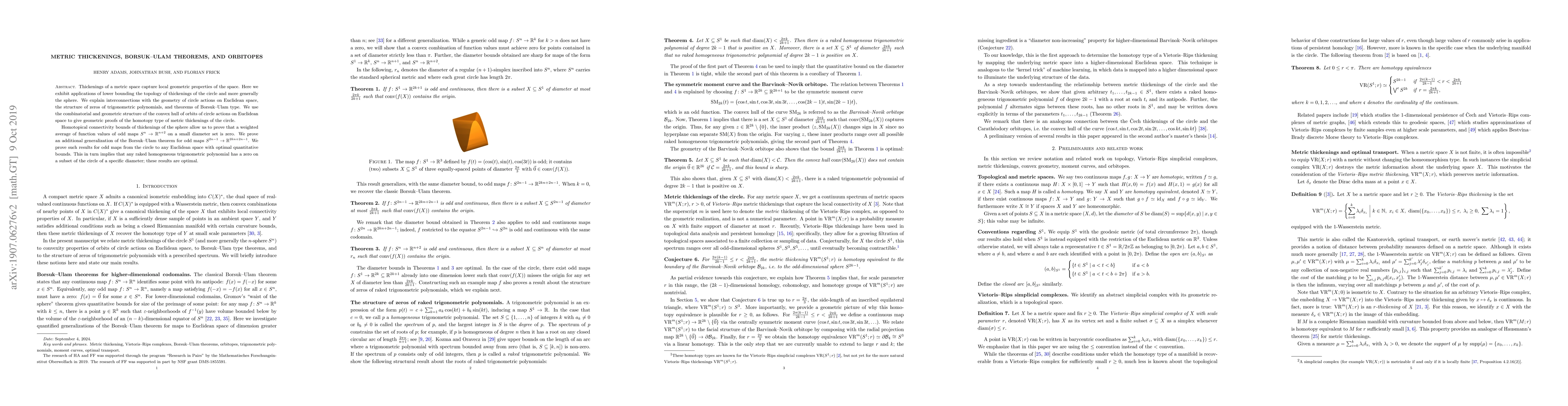 This paper investigates the topology of metric thickenings, particularly focusing on the circle and sphere. It establishes connections between these thickenings and the geometry of circle actions, zeros of trigonometric polynomials, and Borsuk-Ulam theorems, proving optimal bounds for odd maps and showing that raked homogeneous trigonometric polynomials have zeros under specific conditions.
