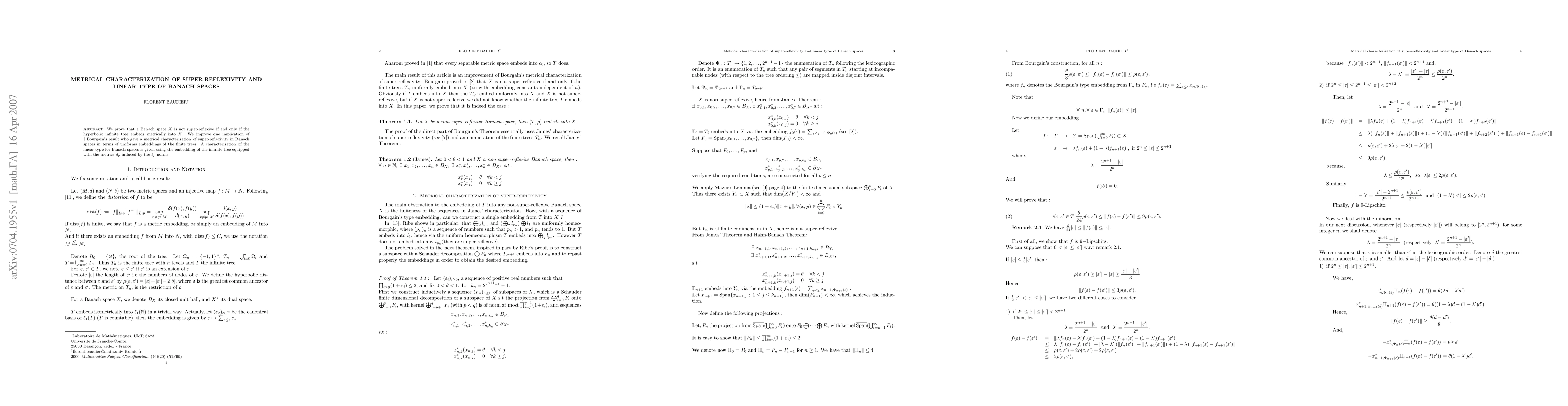 We prove that a Banach space X is not super-reflexive if and only if the hyperbolic infinite tree embeds metrically into X. We improve one implication of J.Bourgain's result who gave a metrical characterization of super-reflexivity in Banach spaces in terms of uniforms embeddings of the finite trees. A characterization of the linear type for Banach spaces is given using the embedding of the infinite tree equipped with a suitable metric.