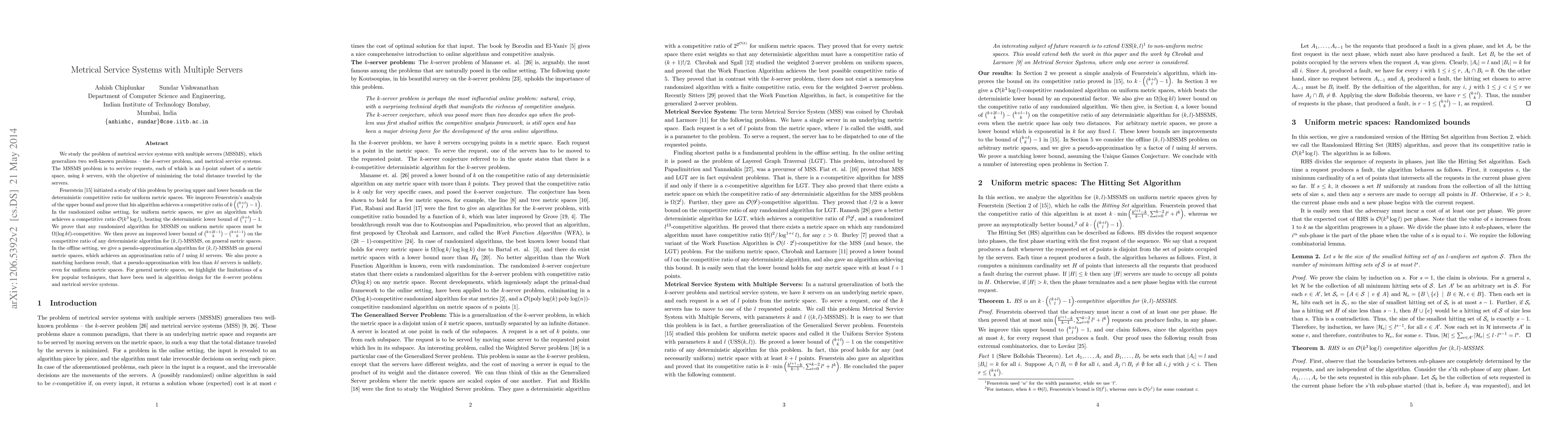 We study the problem of metrical service systems with multiple servers (MSSMS), which generalizes two well-known problems -- the $k$-server problem, and metrical service systems. The MSSMS problem is to service requests, each of which is an $l$-point subset of a metric space, using $k$ servers, with the objective of minimizing the total distance traveled by the servers. Feuerstein initiated a study of this problem by proving upper and lower bounds on the deterministic competitive ratio for uniform metric spaces. We improve Feuerstein's analysis of the upper bound and prove that his algorithm achieves a competitive ratio of $k({{k+l}\choose{l}}-1)$. In the randomized online setting, for uniform metric spaces, we give an algorithm which achieves a competitive ratio $\mathcal{O}(k^3\log l)$, beating the deterministic lower bound of ${{k+l}\choose{l}}-1$. We prove that any randomized algorithm for MSSMS on uniform metric spaces must be $\Omega(\log kl)$-competitive. We then prove an improved lower bound of ${{k+2l-1}\choose{k}}-{{k+l-1}\choose{k}}$ on the competitive ratio of any deterministic algorithm for $(k,l)$-MSSMS, on general metric spaces. In the offline setting, we give a pseudo-approximation algorithm for $(k,l)$-MSSMS on general metric spaces, which achieves an approximation ratio of $l$ using $kl$ servers. We also prove a matching hardness result, that a pseudo-approximation with less than $kl$ servers is unlikely, even for uniform metric spaces. For general metric spaces, we highlight the limitations of a few popular techniques, that have been used in algorithm design for the $k$-server problem and metrical service systems.
