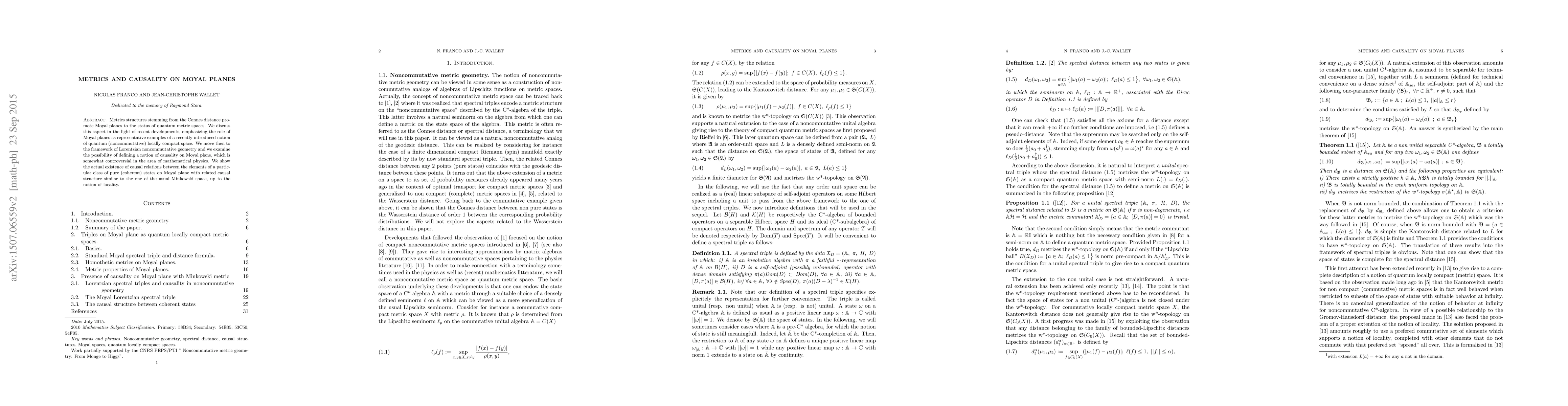 This paper explores metrics on Moyal planes that elevate them to quantum metric spaces and discusses their role in noncommutative locally compact spaces. It investigates the feasibility of defining causality on Moyal planes within the framework of Lorentzian noncommutative geometry, demonstrating the existence of causal relations among specific states on the plane.