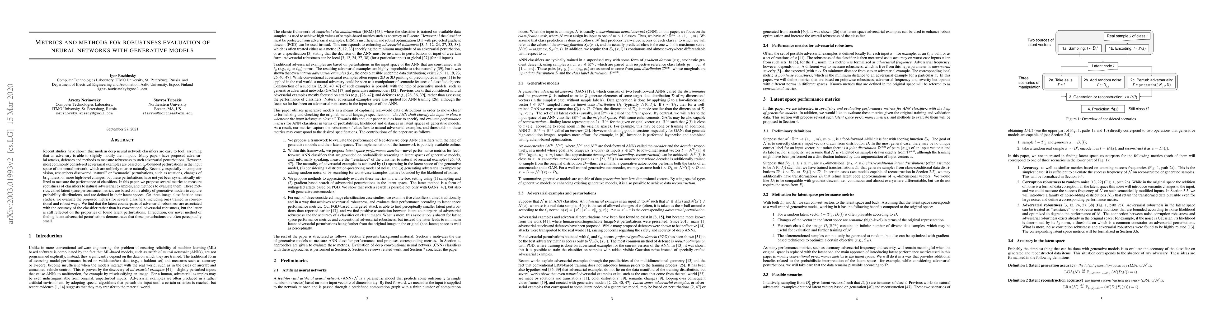 This paper proposes new metrics to measure neural network robustness against natural adversarial examples, which are often small and perceptually insignificant, and finds that these latent perturbations are associated with classifier accuracy rather than traditional adversarial robustness.