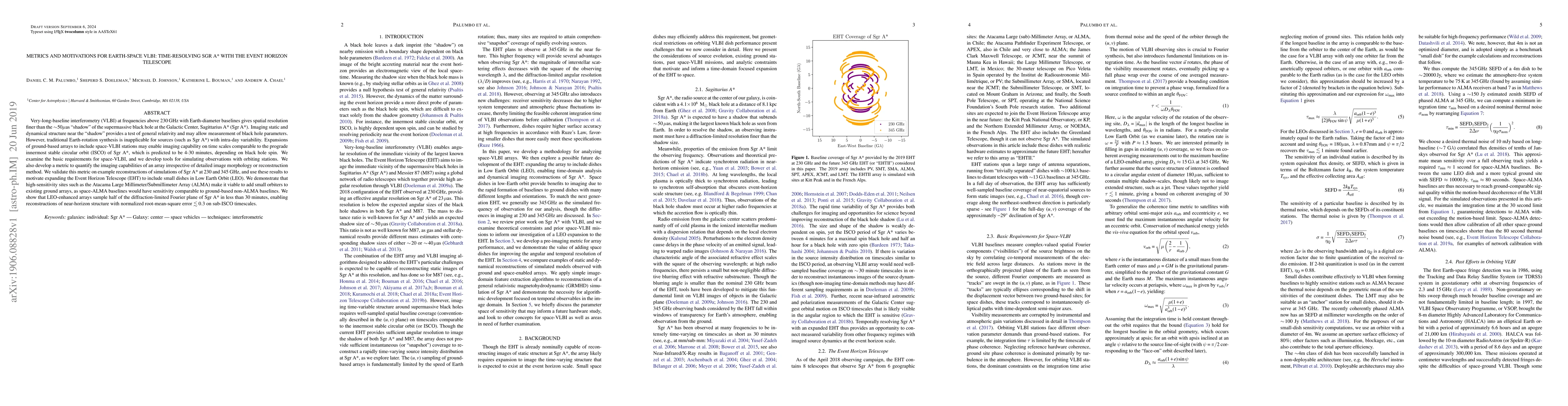 This paper explores the potential of Earth-space VLBI to resolve dynamic structures near Sagittarius A* using the Event Horizon Telescope (EHT) with orbiting stations. The authors propose a metric to evaluate imaging capabilities and demonstrate that LEO-enhanced arrays can reconstruct Sgr A*'s near-horizon structure with high fidelity within minutes.