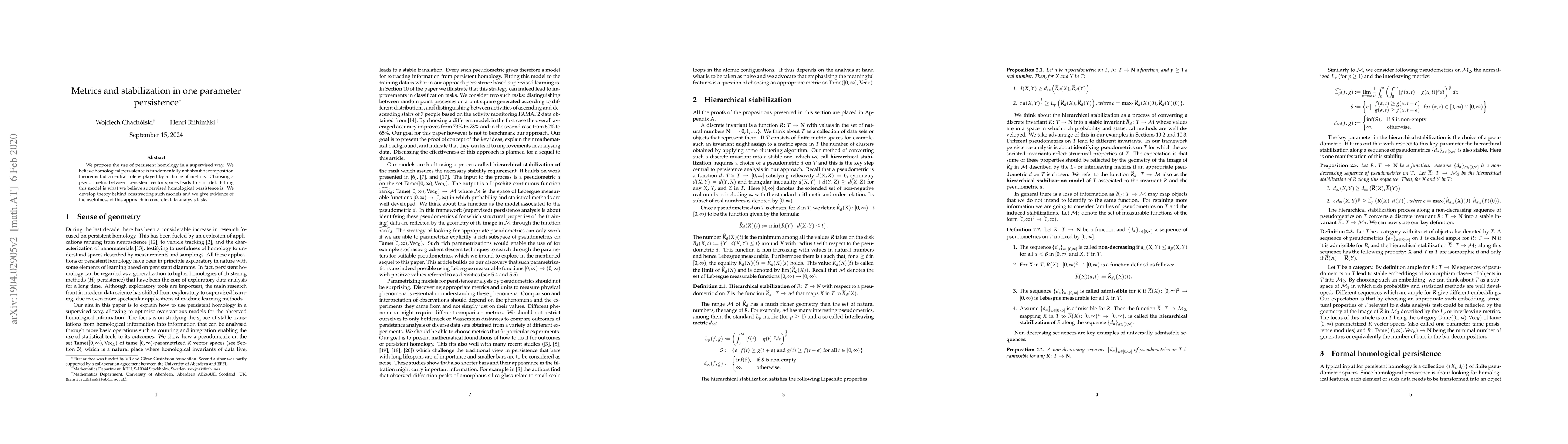 We propose a new way of thinking about one parameter persistence. We believe topological persistence is fundamentally not about decomposition theorems but a central role is played by a choice of metrics. Choosing a pseudometric between persistent vector spaces leads to stabilization of discrete invariants. We develop theory behind this stabilization and stable rank invariant. We give evidence of the usefulness of this approach in concrete data analysis.