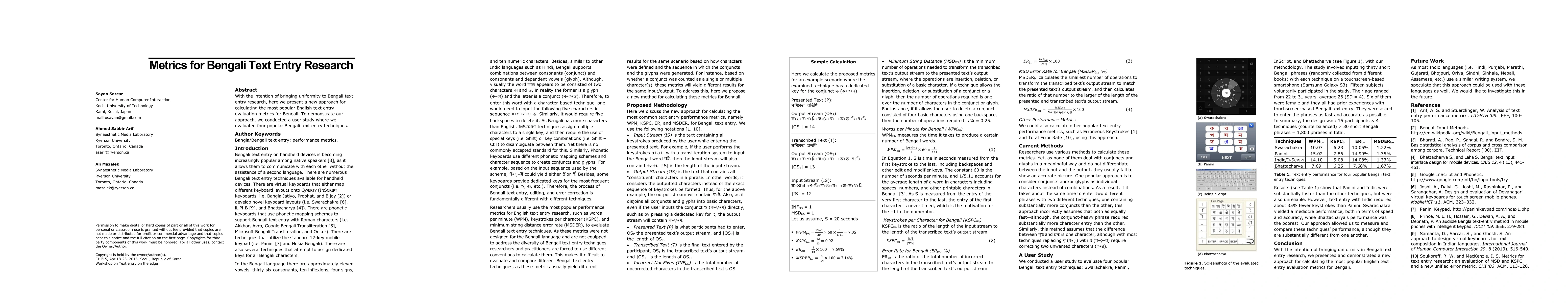 The findings highlight the importance of considering these metrics for uniformity in Bengali text entry research.
