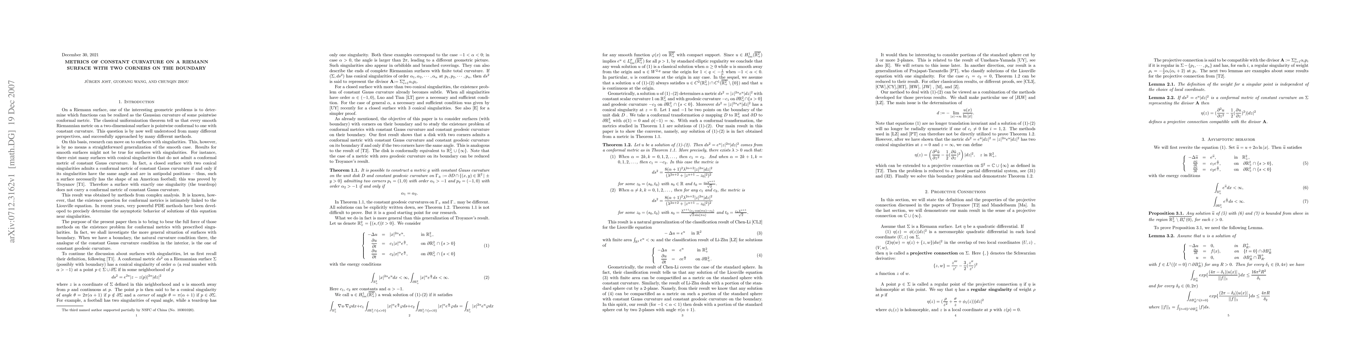 A disk with two corners can have a conformal metric with constant Gauss curvature if and only if the corners have the same angle, according to this research paper.