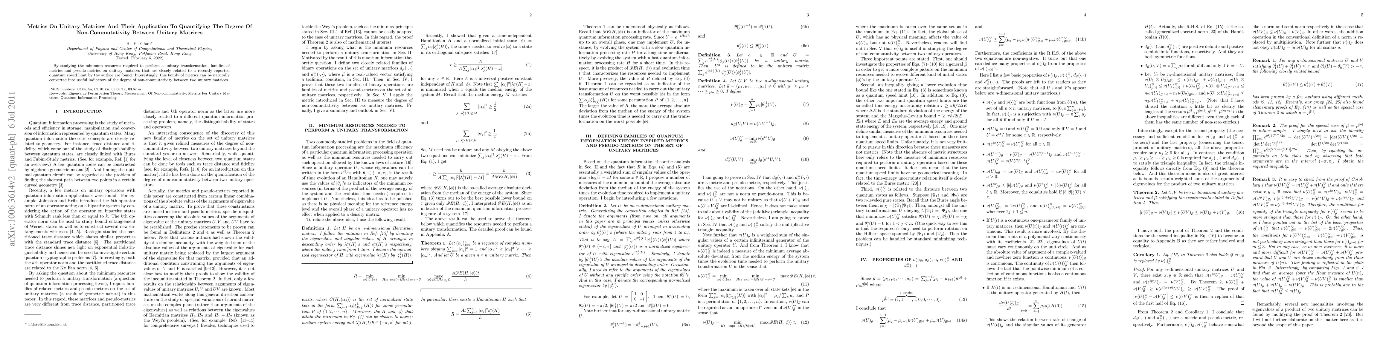 This paper introduces metrics and pseudo-metrics on unitary matrices linked to a quantum speed limit, which can quantify the degree of non-commutativity between two unitary matrices, revealing the minimum resources needed for unitary transformations.