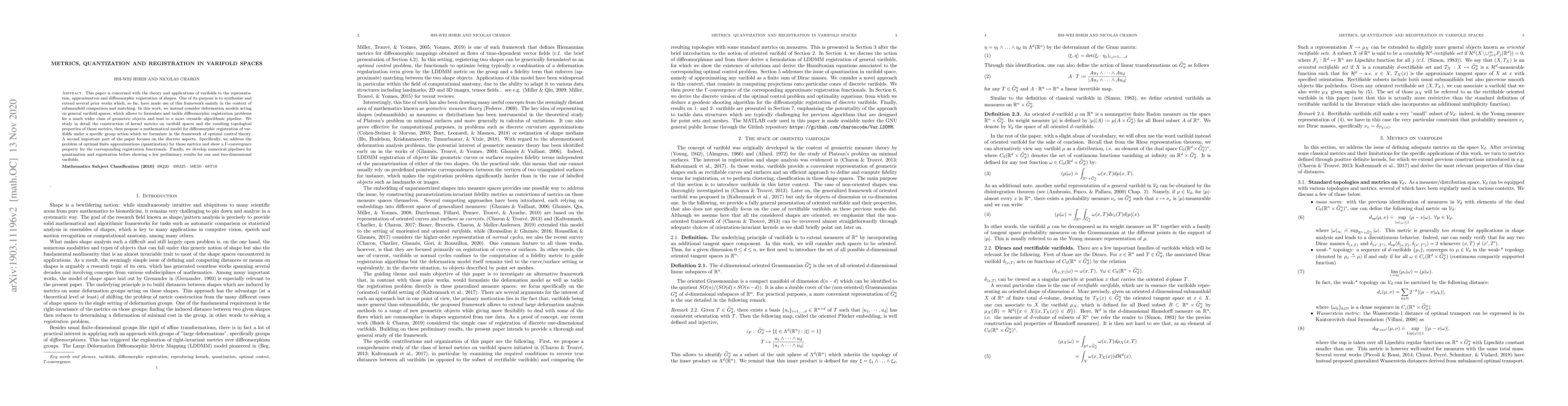 This paper is concerned with the theory and applications of varifolds to the representation, approximation and diffeomorphic registration of shapes. One of its purpose is to synthesize and extend several prior works which, so far, have made use of this framework mainly in the context of submanifold comparison and matching. In this work, we instead consider deformation models acting on general varifold spaces, which allows to formulate and tackle diffeomorphic registration problems for a much wider class of geometric objects and lead to a more versatile algorithmic pipeline. We study in detail the construction of kernel metrics on varifold spaces and the resulting topological properties of those metrics, then propose a mathematical model for diffeomorphic registration of varifolds under a specific group action which we formulate in the framework of optimal control theory. A second important part of the paper focuses on the discrete aspects. Specifically, we address the problem of optimal finite approximations (quantization) for those metrics and show a $\Gamma$-convergence property for the corresponding registration functionals. Finally, we develop numerical pipelines for quantization and registration before showing a few preliminary results for one and two-dimensional varifolds.