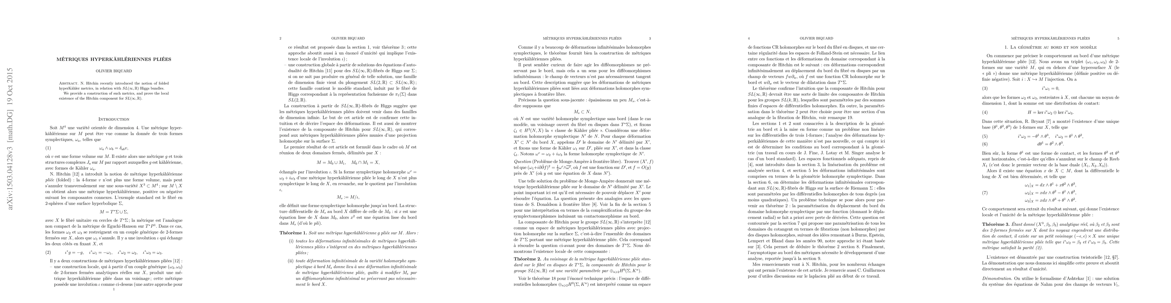 N. Hitchin recently introduced the notion of folded hyperK\"ahler metrics, in relation with SL(\infty,R) Higgs bundles. We provide a construction of such metrics, and prove the local existence of the Hitchin component for SL(\infty,R).