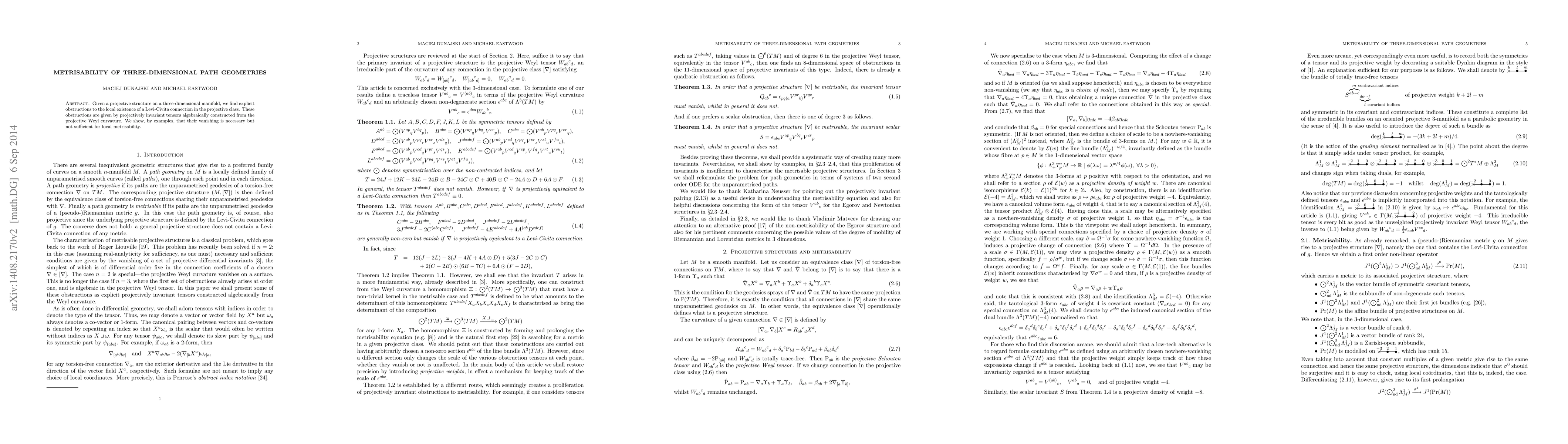 This paper identifies explicit algebraic obstructions, derived from projective Weyl curvature, that prevent the local existence of a Levi-Civita connection in three-dimensional projective manifolds. It demonstrates that while these obstructions must vanish for local metrisability, their absence alone is not sufficient.