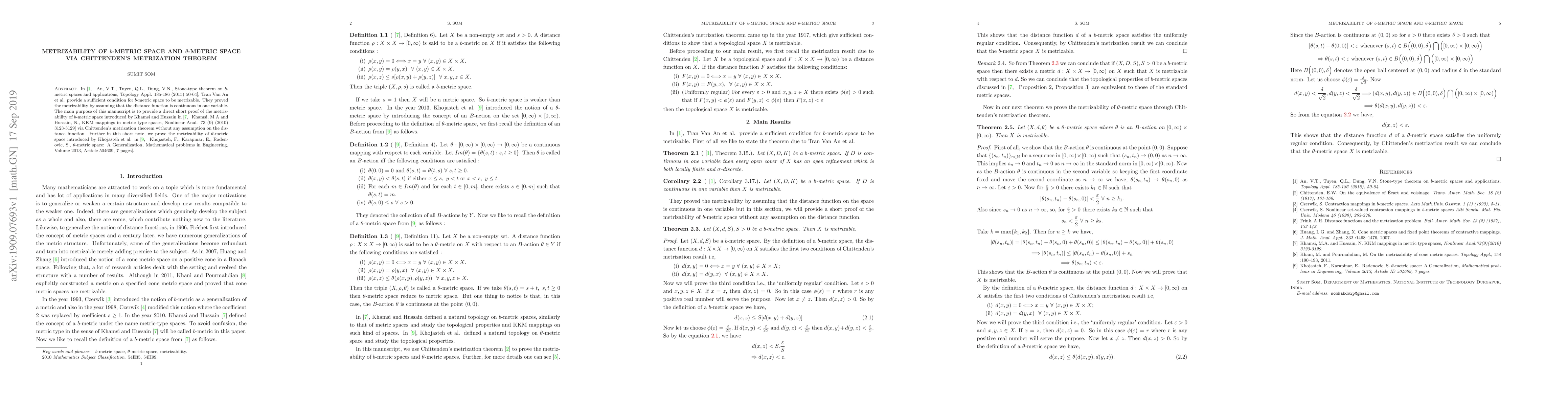 In [An, V.T., Tuyen, Q.L., Dung, V.N., Stone-type theorem on $b$-metric spaces and applications, Topology Appl. 185-186 (2015) 50-64], Tran Van An et al. provide a sufficient condition for $b$-metric space to be metrizable. They proved the metrizability by assuming that the distance function is continuous in one variable. The main purpose of this manuscript is to provide a direct short proof of the metrizability of $b$-metric space introduced by Khamsi and Hussain in \cite[\, Khamsi, M.A and Hussain, N., KKM mappings in metric type spaces, Nonlinear Anal. 73 (9) (2010) 3123-3129]{kh} via Chittenden's metrization theorem without any assumption on the distance function. Further in this short note, we prove the metrizability of $\theta$-metric space introduced by Khojasteh et al. in [Khojasteh, F., Karapinar, E., Radenovic, S., $\theta$-metric space: A Generalization, Mathematical problems in Engineering, Volume 2013, Article 504609, 7 pages].