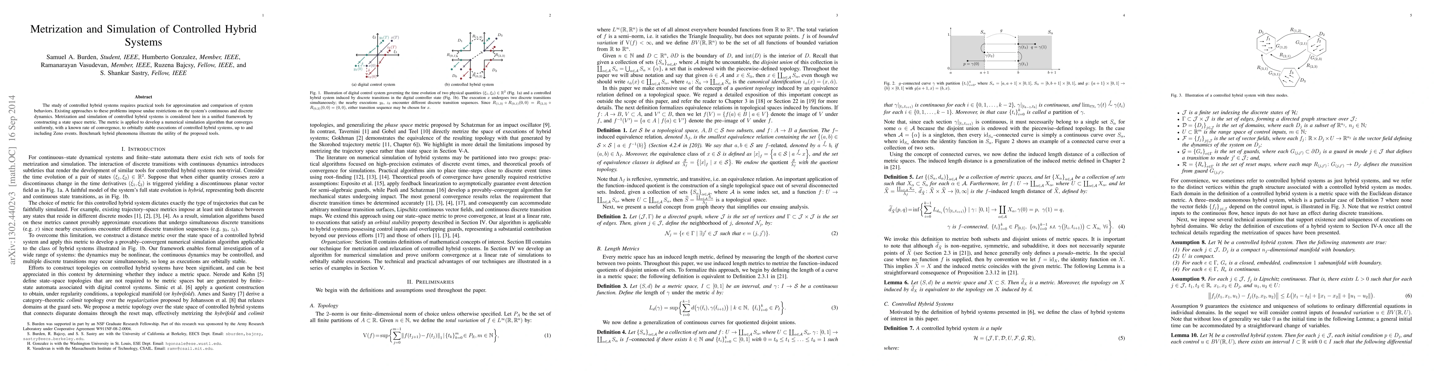 This paper proposes a unified framework for metrizing and simulating controlled hybrid systems, constructing a state space metric to enable uniform, rate-convergent numerical simulation, including handling of Zeno events, and demonstrates the utility through benchmark hybrid phenomena.