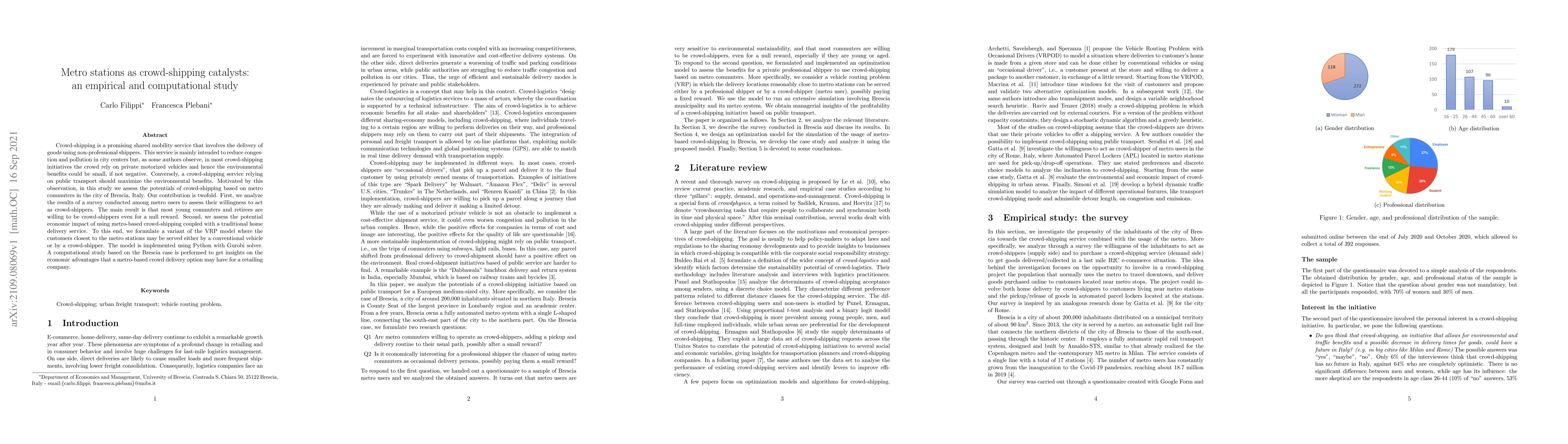 This study investigates the potential of metro-based crowd-shipping to reduce congestion and pollution in city centers, with key findings showing that most young commuters are willing to act as crowd-shippers, and a computational model suggests economic advantages for retailing companies.