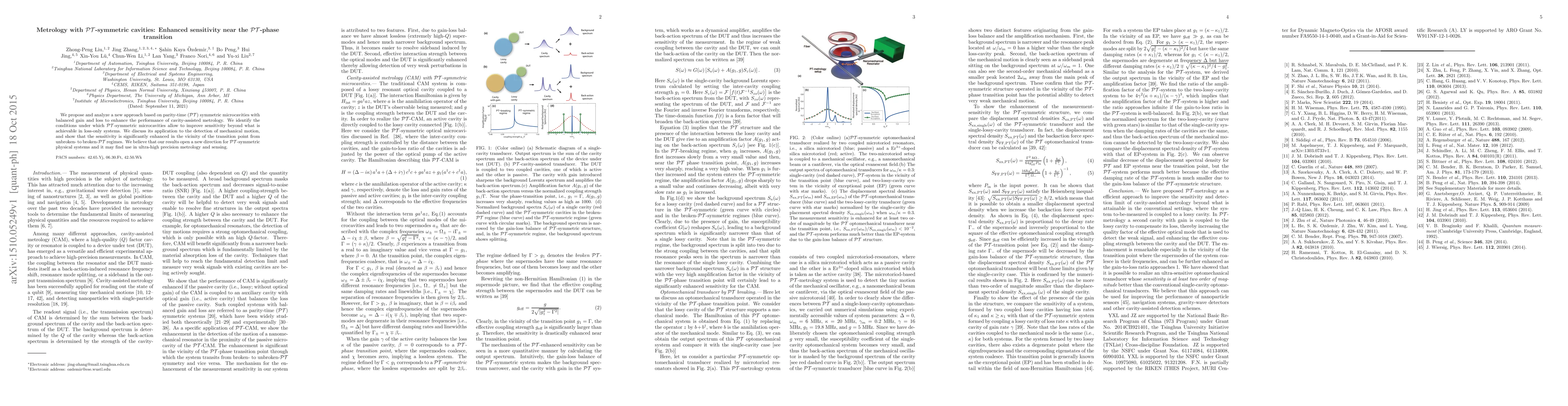 We propose and analyze a new approach based on parity-time ($\mathcal{PT}$) symmetric microcavities with balanced gain and loss to enhance the performance of cavity-assisted metrology. We identify the conditions under which $\mathcal{PT}$-symmetric microcavities allow to improve sensitivity beyond what is achievable in loss-only systems. We discuss its application to the detection of mechanical motion, and show that the sensitivity is significantly enhanced in the vicinity of the transition point from unbroken- to broken-$\mathcal{PT}$ regimes. We believe that our results open a new direction for $\mathcal{PT}$-symmetric physical systems and it may find use in ultra-high precision metrology and sensing.