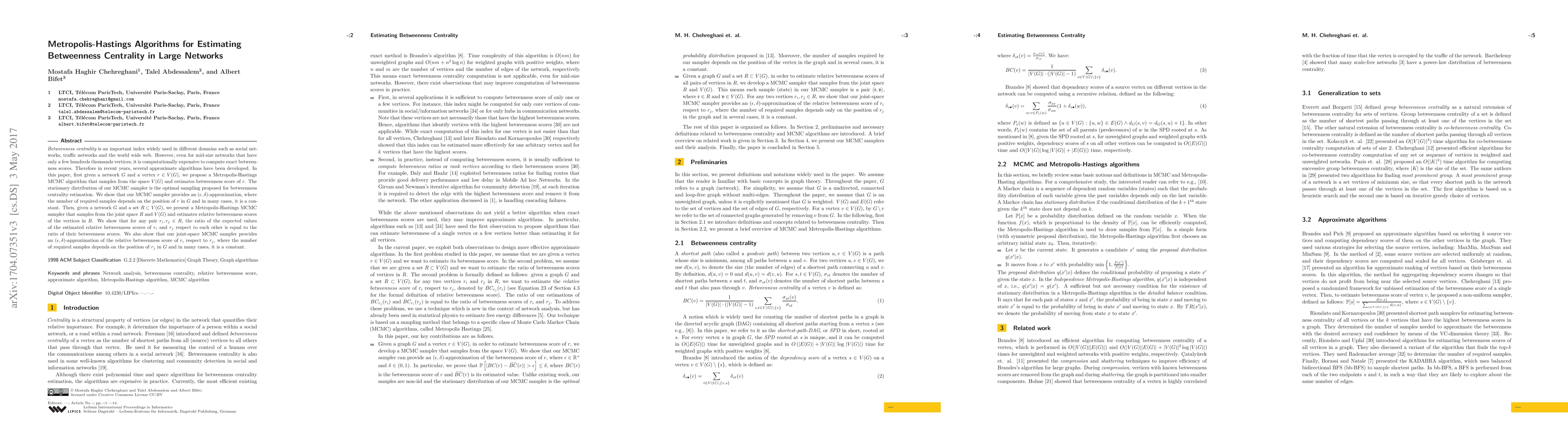 Researchers developed a Metropolis-Hastings algorithm to estimate betweenness centrality in large networks with improved efficiency, providing approximate but accurate solutions for mid-size networks.
