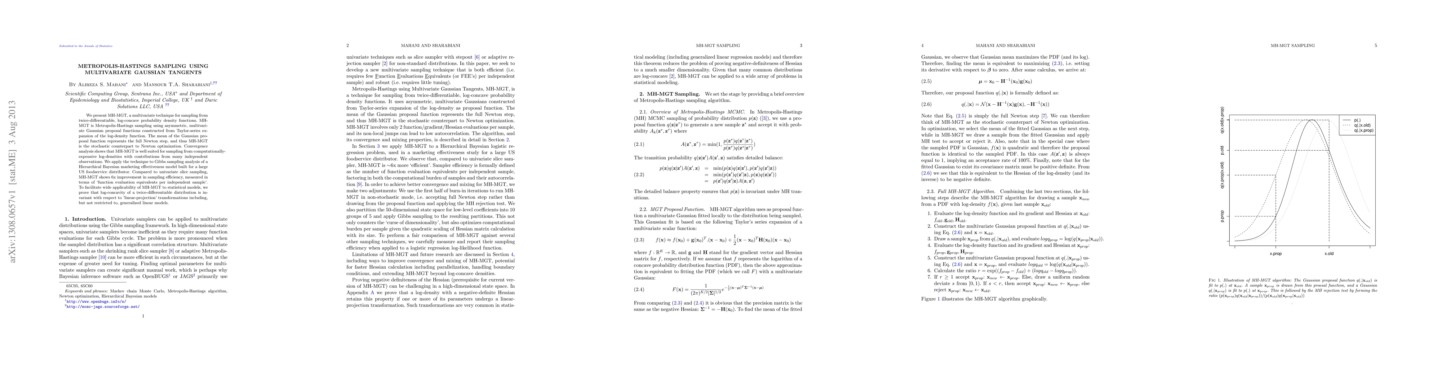 We present MH-MGT, a multivariate technique for sampling from twice-differentiable, log-concave probability density functions. MH-MGT is Metropolis-Hastings sampling using asymmetric, multivariate Gaussian proposal functions constructed from Taylor-series expansion of the log-density function. The mean of the Gaussian proposal function represents the full Newton step, and thus MH-MGT is the stochastic counterpart to Newton optimization. Convergence analysis shows that MH-MGT is well suited for sampling from computationally-expensive log-densities with contributions from many independent observations. We apply the technique to Gibbs sampling analysis of a Hierarchical Bayesian marketing effectiveness model built for a large US foodservice distributor. Compared to univariate slice sampling, MH-MGT shows 6x improvement in sampling efficiency, measured in terms of `function evaluation equivalents per independent sample'. To facilitate wide applicability of MH-MGT to statistical models, we prove that log-concavity of a twice-differentiable distribution is invariant with respect to 'linear-projection' transformations including, but not restricted to, generalized linear models.