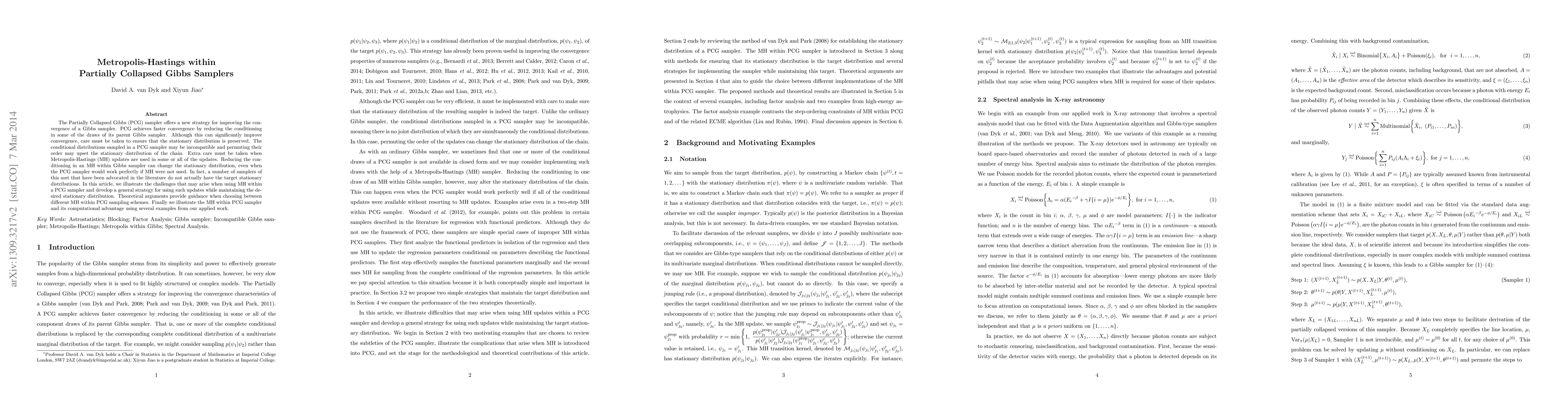 This paper explores the integration of Metropolis-Hastings updates within Partially Collapsed Gibbs samplers to enhance convergence, while addressing the challenges of maintaining the correct stationary distribution. It proposes a general strategy to ensure the desired stationary distribution is preserved, with theoretical insights and practical examples demonstrating computational benefits.