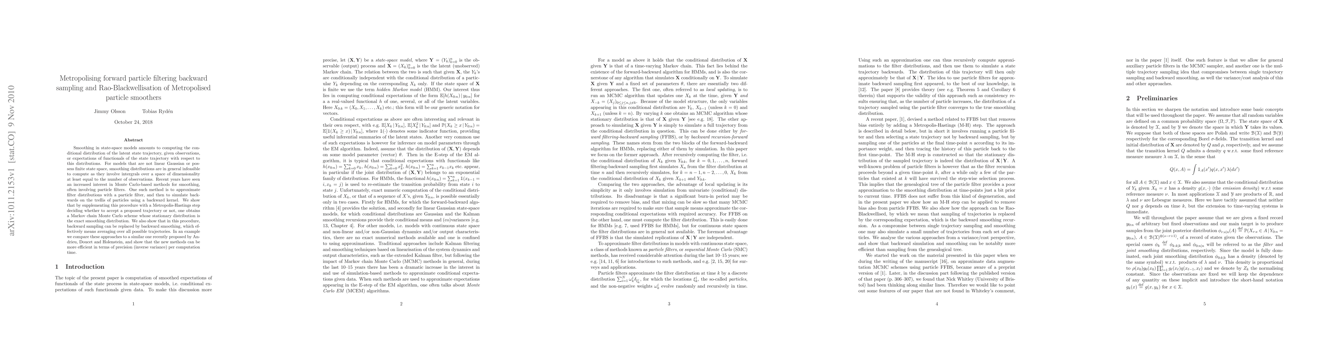 This paper proposes a novel Metropolising forward particle filtering combined with backward sampling and Rao-Blackwellisation to achieve exact smoothing distributions in non-linear, non-Gaussian state-space models. The method shows improved efficiency in precision per computation time compared to existing approaches.
