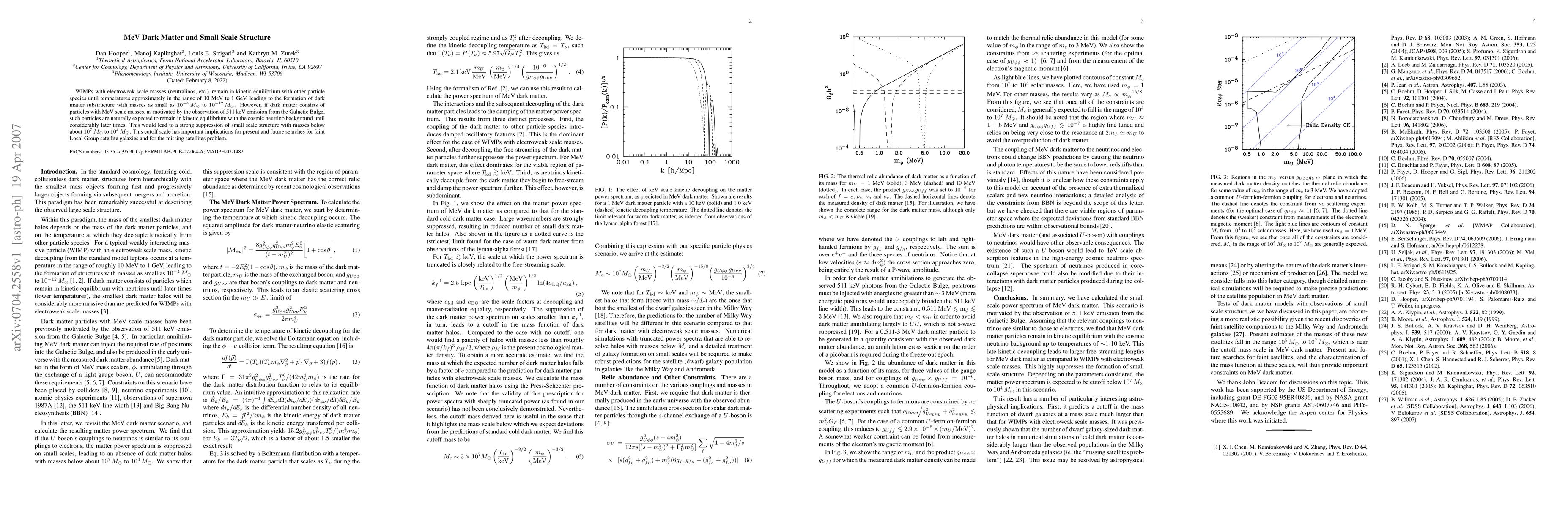 This paper discusses the formation of dark matter substructure in the universe, comparing scenarios where dark matter is composed of WIMPs versus MeV scale particles. It concludes that MeV dark matter would suppress small scale structures, impacting searches for faint satellite galaxies and addressing the missing satellites problem.