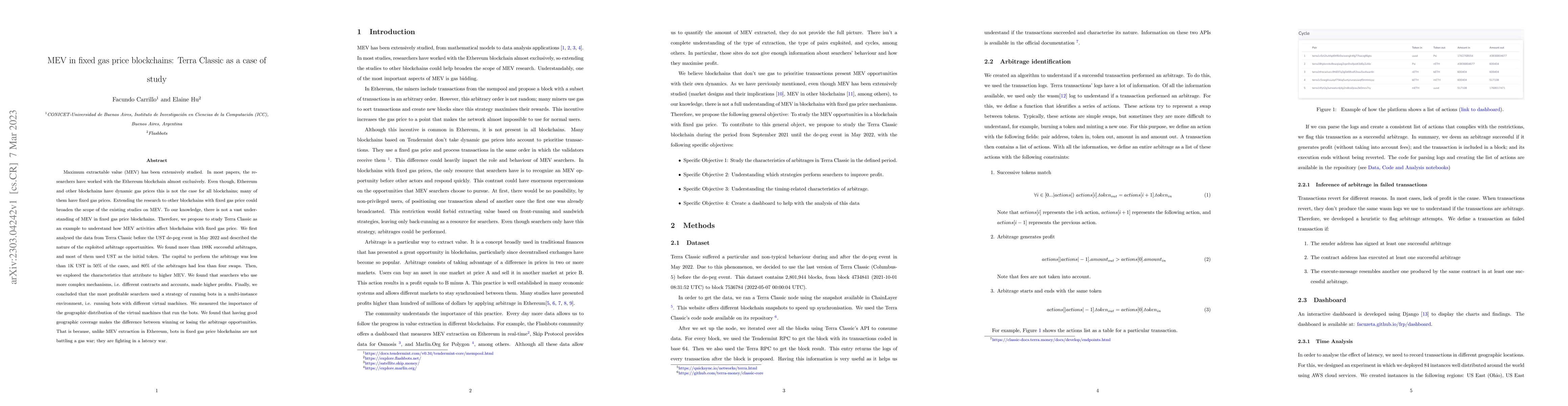 This paper explores maximum extractable value (MEV) in fixed gas price blockchains using Terra Classic as a case study. The research reveals that MEV in such systems is driven by latency rather than gas price competition, with successful arbitrageurs employing complex mechanisms and geographic distribution of bots to maximize profits.