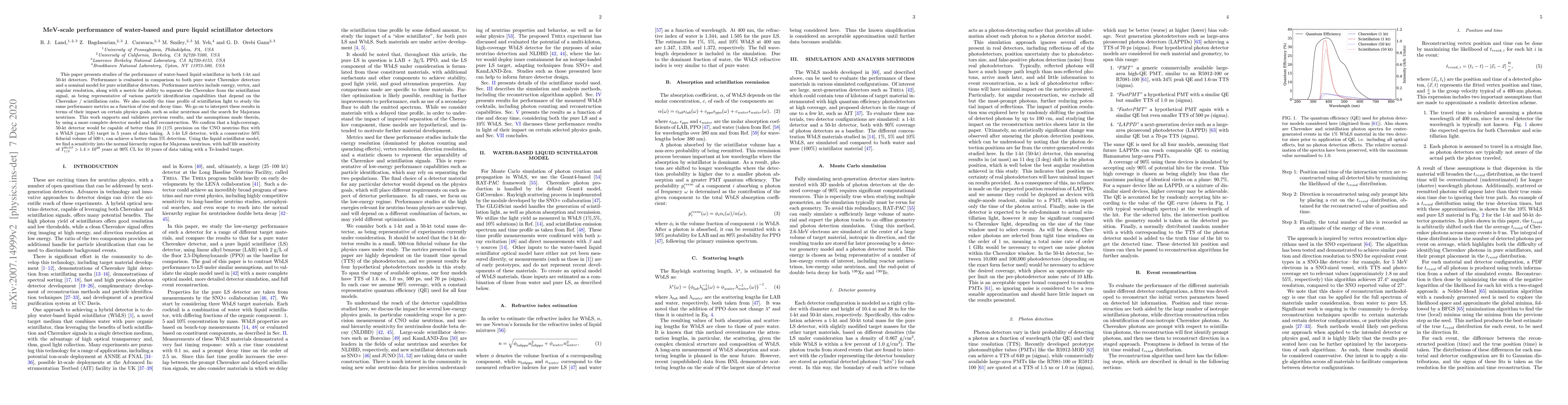 This paper evaluates the performance of water-based liquid scintillator detectors against pure water Cherenkov and pure scintillator detectors, focusing on energy, vertex, and angular resolution. It finds that a 50-kt detector can achieve better than 10% precision on CNO neutrino flux and a 1-kt detector can detect neutrinos with better than 5% precision.