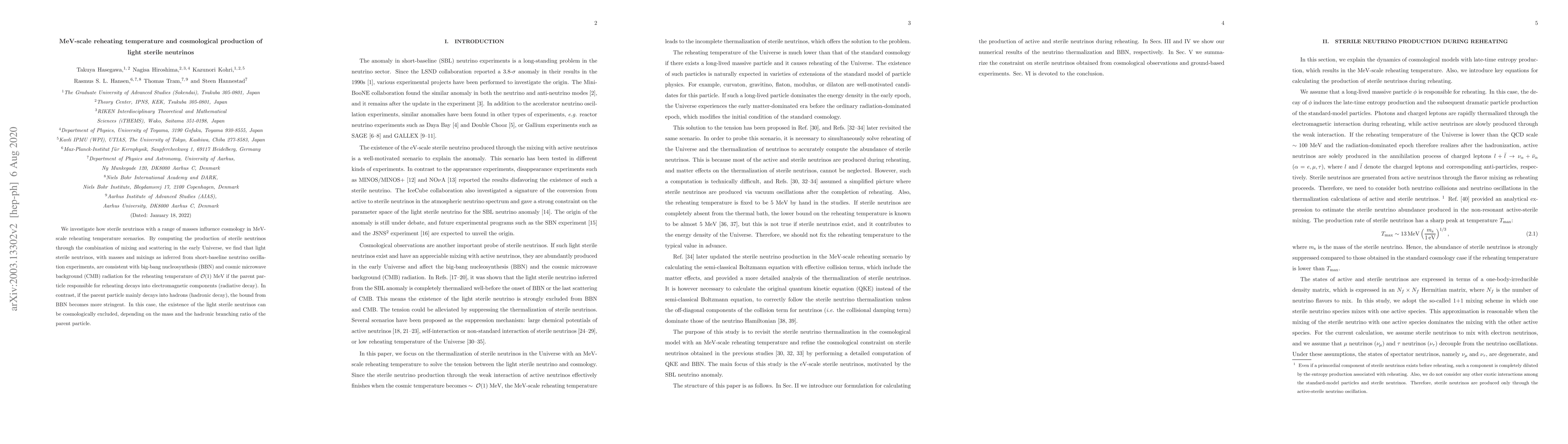This paper examines the cosmological production of light sterile neutrinos in MeV-scale reheating scenarios, finding that their existence is consistent with standard cosmological models if the reheating particle decays electromagnetically. Conversely, hadronic decay leads to stricter bounds, potentially excluding their existence depending on mass and decay characteristics.