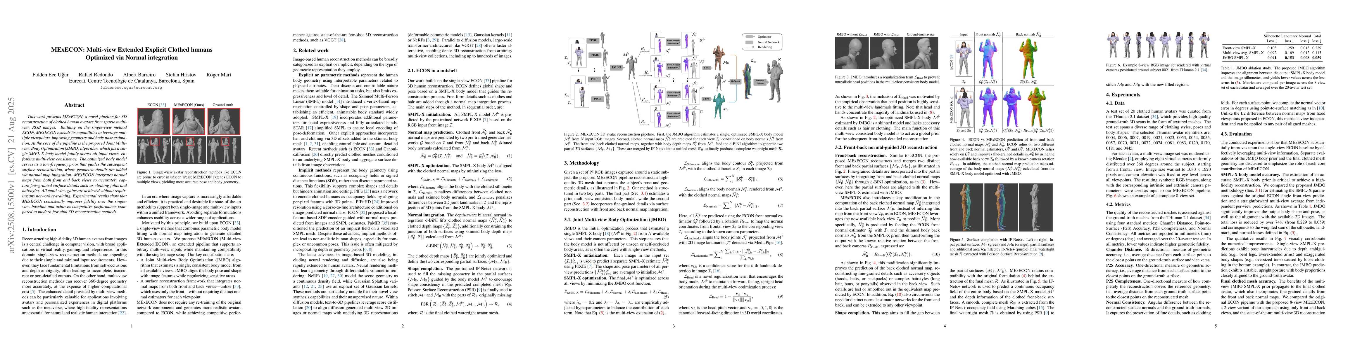 This work presents MExECON, a novel pipeline for 3D reconstruction of clothed human avatars from sparse multi-view RGB images. Building on the single-view method ECON, MExECON extends its capabilities to leverage multiple viewpoints, improving geometry and body pose estimation. At the core of the pipeline is the proposed Joint Multi-view Body Optimization (JMBO) algorithm, which fits a single SMPL-X body model jointly across all input views, enforcing multi-view consistency. The optimized body model serves as a low-frequency prior that guides the subsequent surface reconstruction, where geometric details are added via normal map integration. MExECON integrates normal maps from both front and back views to accurately capture fine-grained surface details such as clothing folds and hairstyles. All multi-view gains are achieved without requiring any network re-training. Experimental results show that MExECON consistently improves fidelity over the single-view baseline and achieves competitive performance compared to modern few-shot 3D reconstruction methods.