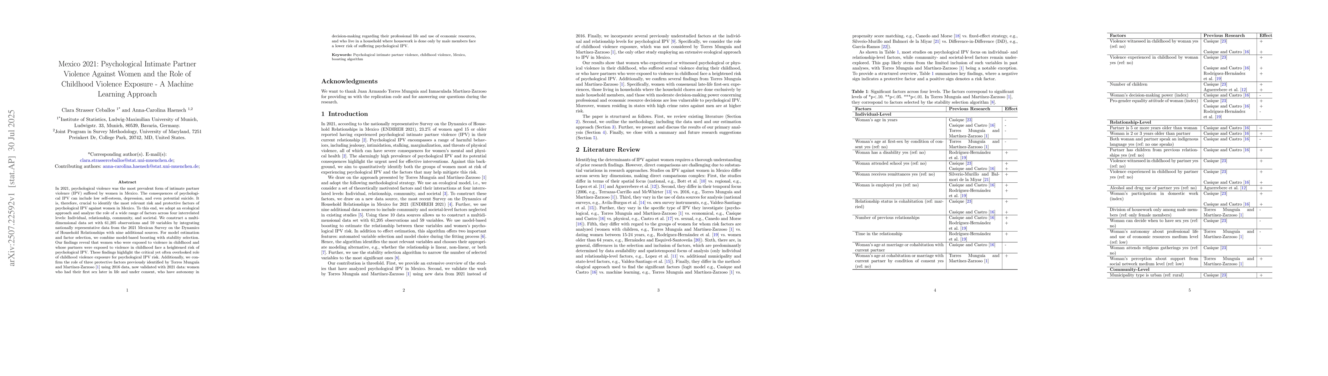 The study uses an ecological approach, integrating nationally representative data from the 2021 Mexican Survey on the Dynamics of Household Relationships with nine additional sources. Model-based boosting combined with stability selection is employed for model estimation and factor selection.