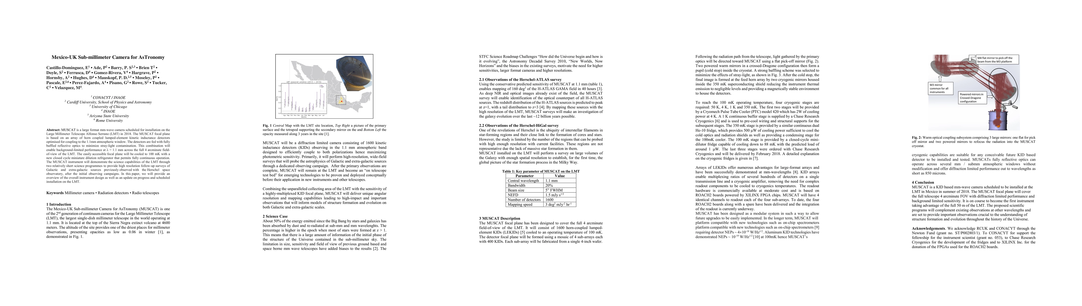 The MUSCAT mm-wave camera, designed for the Large Millimeter Telescope, features an array of kinetic inductance detectors optimized for the 1.1mm atmospheric window, with a new dilution refrigerator for cooling. The instrument aims to demonstrate the telescope's capabilities through high-resolution follow-up surveys of sources observed by the Herschel space observatory.