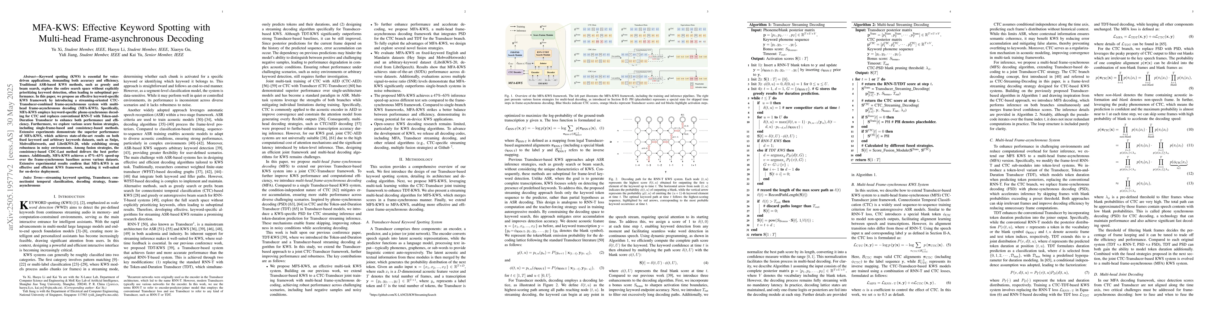 The research introduces MFA-KWS, a keyword spotting (KWS) framework combining CTC-Transducer with multi-head frame-asynchronous decoding, employing keyword-specific phone-synchronous decoding for CTC and replacing RNN-T with Token-and-Duration Transducer to enhance performance and efficiency.