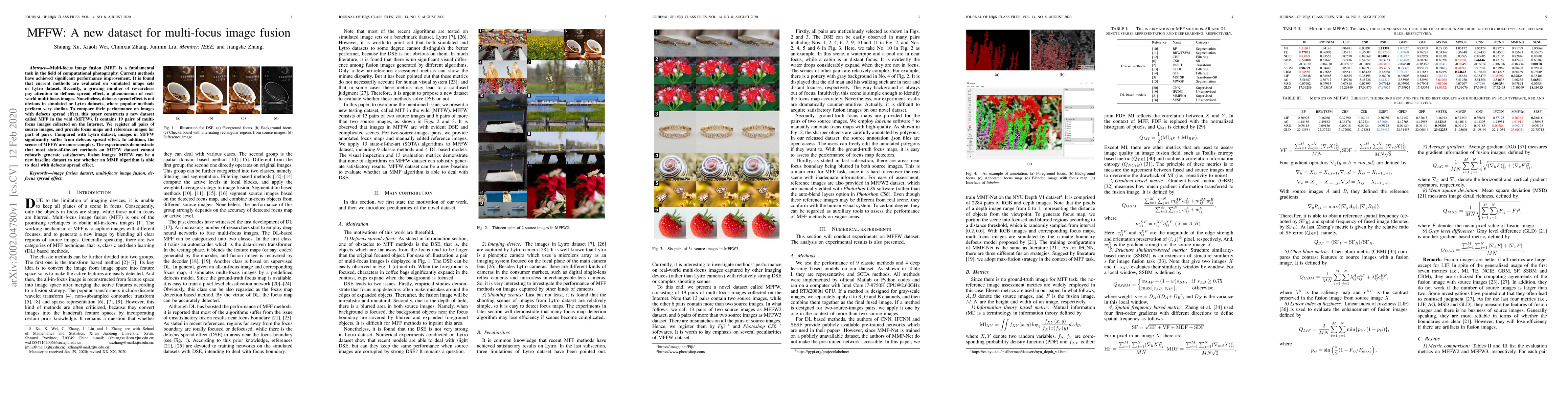 This paper introduces MFFW, a new dataset for evaluating multi-focus image fusion methods, focusing on real-world defocus spread effects. The MFFW dataset contains 19 pairs of complex, real-world multi-focus images, significantly different from existing datasets, which highlights the need for robust fusion algorithms.