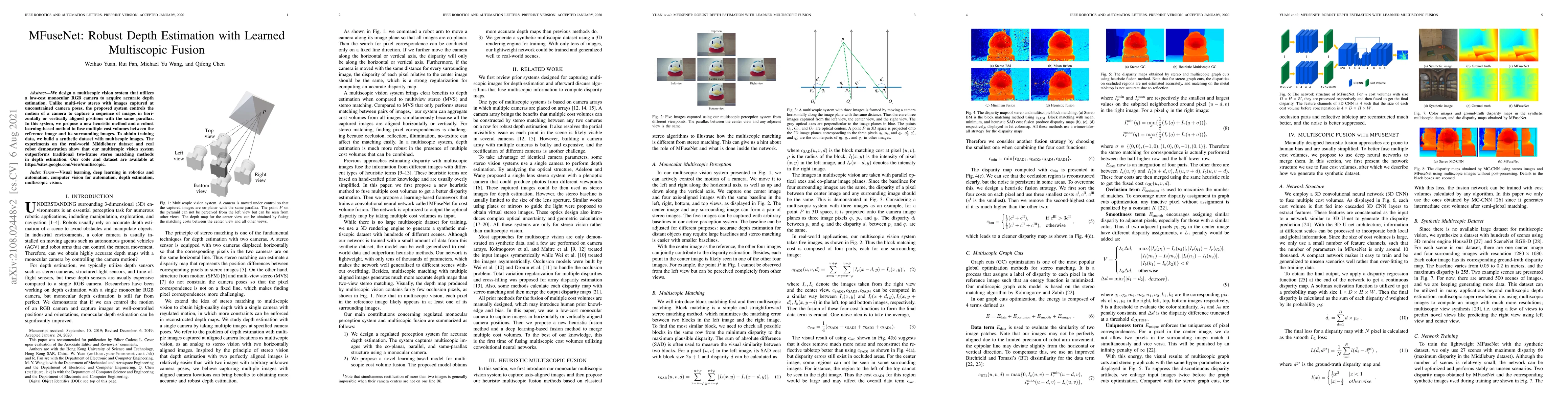 We design a multiscopic vision system that utilizes a low-cost monocular RGB camera to acquire accurate depth estimation. Unlike multi-view stereo with images captured at unconstrained camera poses, the proposed system controls the motion of a camera to capture a sequence of images in horizontally or vertically aligned positions with the same parallax. In this system, we propose a new heuristic method and a robust learning-based method to fuse multiple cost volumes between the reference image and its surrounding images. To obtain training data, we build a synthetic dataset with multiscopic images. The experiments on the real-world Middlebury dataset and real robot demonstration show that our multiscopic vision system outperforms traditional two-frame stereo matching methods in depth estimation. Our code and dataset are available at https://sites.google.com/view/multiscopic.