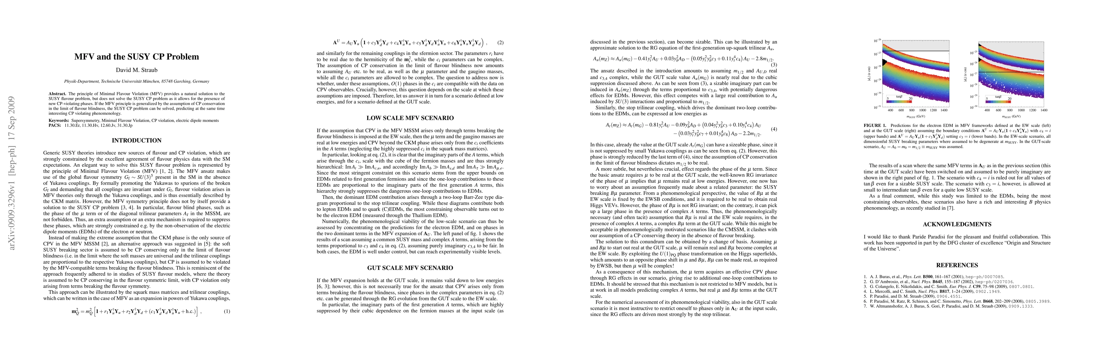 Summary: The Minimal Flavour Violation (MFV) principle resolves the SUSY flavour problem but not the SUSY CP problem, which allows for CP-violating phases. Generalizing MFV with CP conservation in flavour-blind scenarios can solve the CP problem and predict intriguing CP-violating phenomena.